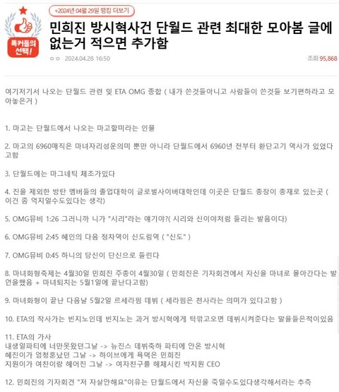 근데 웃긴건 민희진 관련글은