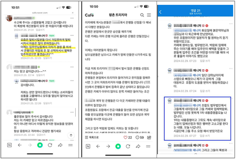 일반적으로 신축 입주 단지의 경우 입주민들의 투표를 통하여 다 득표 업체를 선정하는 방식과는 첨예하게 반대되는 상황으로, 이를 인지한 입주민들이 카페 내 댓글을 통하여 선정 과정을 투명하게 공개하거나 투표를 통한 정상적인 방법으로 진행해달라 요청을 하였고, 요청한 입주민들을 카페에서 강퇴시켰습니다. 또한, 일반 분양자의 소유권이전등기 업무는 조합과는 업무의 연관성조차 없음에도 불구하고 조합이라는 지위를 이용하여 명백한 특정업체 밀어주기를 위해 월권을 행사하고 있습니다.