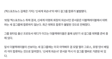 테디 걸그룹 신세계 손녀 데뷔 불발됨