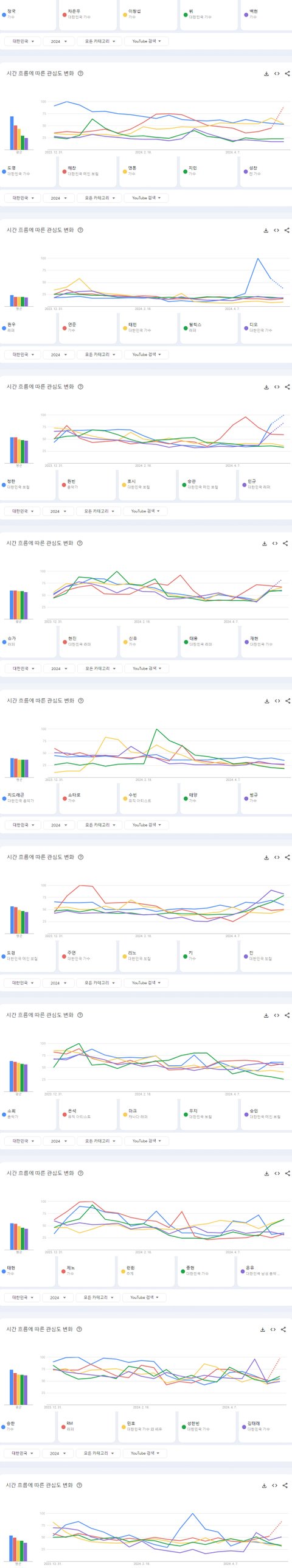 2024년 현재까지 한국 유튜브에서 가장 많이 검색된 케이팝 남자아이돌그룹 멤버 TOP50