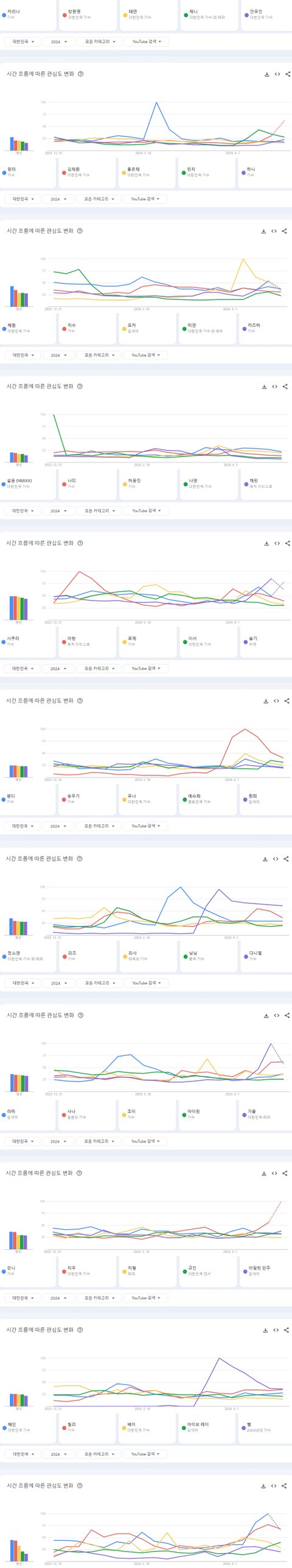 2024년 현재까지 한국 유튜브에서 가장 많이 검색된 케이팝 여자아이돌그룹 멤버 TOP50