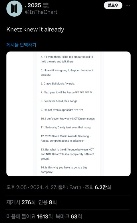 https://twitter.com/InTheChart/status/1784083265885737100?ref_src=twsrc%5Etfw%7Ctwcamp%5Etweetembed%7Ctwterm%5E1784083265885737100%7Ctwgr%5Ede4bb59039ece8d7d179561f7e36420ed73e41ca%7Ctwcon%5Es1_c10&ref_url=https%3A%2F%2Ftheqoo.net%2Fsquare%2F3204647459