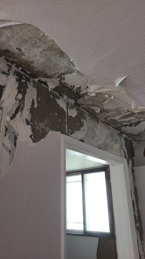 아파트에 입주하고 한달이 지나갈쯤에 윗집 누수로 물이 새서 방부터 거실까지 벽이 다 망가졌습니다.