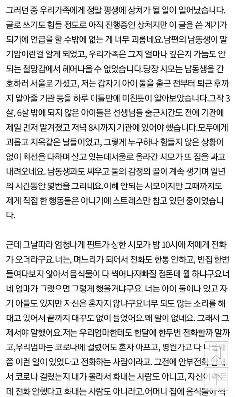 시어머니가 돌아가셨어요. 제가 말 실수를 한걸까요.