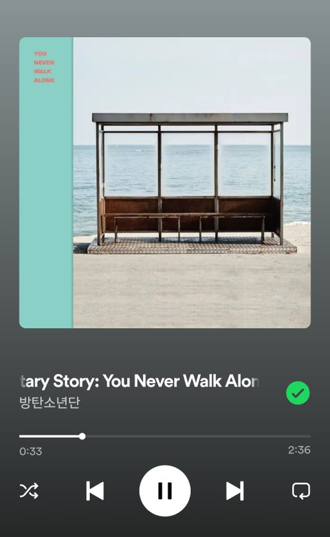 스밍 돌리는 거랑 별개로 요새 너무 위로가 필요해서 스포티로 방탄 노래들 많이 듣고 있는데 방탄 노래들이 다 그렇지만 유 네버 워크 얼론 이거 진짜 가사도 좋고 눈물난다 윙즈 투어 때도 생각나고 ynwa 앨범 원래 좋아해서 자주 전곡 돌리는데 진짜 좋아