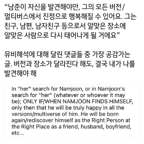 조금 다른 결이긴한데 들꽃놀이에서도 나를 나로 하게 하소서 도 생각나고 에피파니에 나를 찾으러 가는 여정, no2의 아윌비 포레버 미 생각나기도 하구 이것저것 유기적으로 생각나구 그래ㅋㅋ