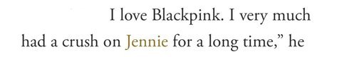 며칠전 GQ 인터뷰에선 블핑 사랑한다고 오랫동안 제니 짝사랑 했다고 말함
