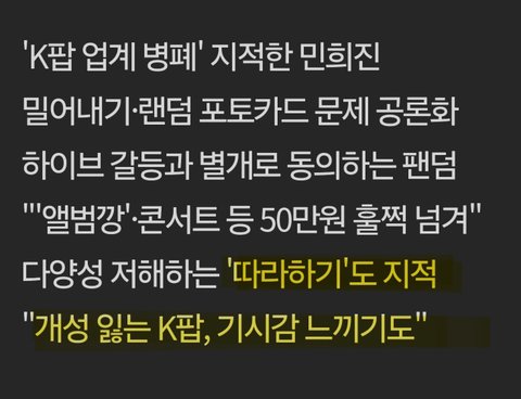 뉴진스 이미지만 깎아먹는 민희진은 당장 내려오시길 바랍니다
