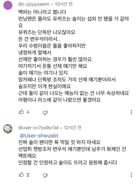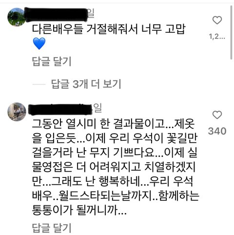 탐라에 넘어오는 선업튀 영상 보다가 정주행 시작해서 입덕하려고 했는데 인스타 유튜브 가리지 않고 진짜 팬들이 너무 줌내 나고 그냥 줌내만 나면 상관 없는데 타 배우 머리채 너무 잡아서 이 판에 있기가 싫어짐