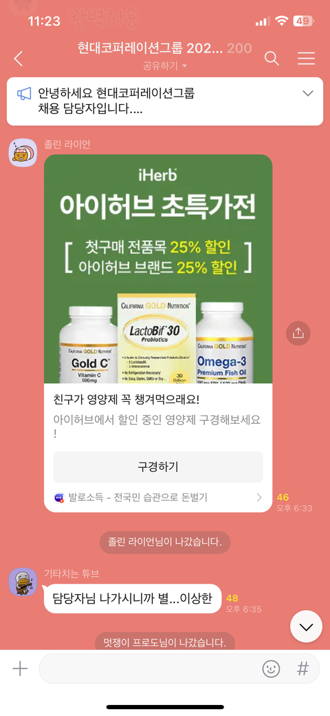 싱글벙글 현대코퍼레이션 신입 공채 톡방