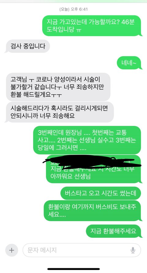 그 당일이 되서 마지막날에 한시간 걸려 갔더니 코로나 양성이 떴다고 함 이럴때 어떻게 해야할까요