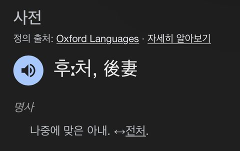 첩(X) 후처(O)- 말 그대로 나중에 맞은 아내라는 뜻일 뿐입니다.