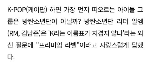 방탄 알엠: k는 선구자들이 쟁취하신 프리미엄 라벨이다 자랑스럽다