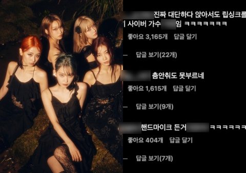 이렇게 국내 팬미팅은 성황리에 마무리됐지만 공식 계정 콘텐츠에 달린 반응은 그렇지 못하다. 총 12개의 콘텐츠가 업로드됐는데, 라이브 실력을 지적하는 부정적 여론이 다수 목격되고 있다. 최근 미국 최대 규모 공연 '코첼라 밸리 뮤직 앤드 아트 페스티벌'(이하 '코첼라') 무대에 섰다가 라이브 논란에 시달린바.