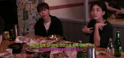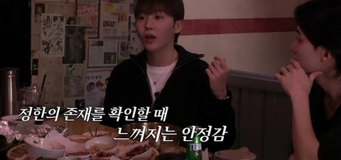 그러니까 정한이 형이 없거나 그러면 내가 푹 꺼지는 거야. 근데 이제 정한이 형이? 저기서 뭔가 사부작대고, 부스럭 대는 소리를 들으면 “아 정한이 형이 있구나” 정한이 형은 나보다 훨씬 무던해 사람이