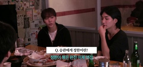 정한이 형은 완전 이제 약간 제일 틱틱 많이 대고, 제일 어떻게 보면 표현 잘 안하고, 근데 이제 누구보다 사랑하는 그런 존재가 되어있어.