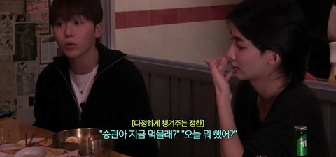 나 완전 예민하고 기복이 심한데 정한이 형은 뭐 시키면 “승관아 지금 먹을래?” “오늘 뭐 했어?” 내가 올해 초에 빡 느낀 거야 그냥 이 형의 모든 게 나한테 고마운 거지!