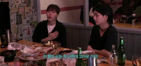 그러면서 이제 한번 술을 같이 마시다가 내가 막 갑자기 눈물이 나가지고 울면서 정한이 형한테 고맙다는 표현을 그때 처음 한 것 같아.