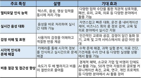 GPT-4o는 텍스트뿐만 아니라 음성이나 영상을 처리할 수 있는 멀티모달 기능을 갖추고 있어, 키보드 없이도 AI와 대화를 나눌 수 있게 되었습니다. 또한 이 모델은 감정 이해와 공감 능력도 향상되어, 더욱 인간적인 소통이 가능해졌습니다. 이러한 기술의 발전은 우리가 AI와 교류하는 방식을 근본적으로 변화시킬 것이며, 단순한 편리함을 넘어 진정한 의미에서의 상호작용을 가능하게 할 것입니다.