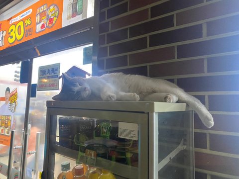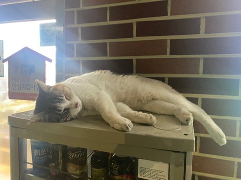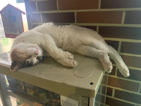 우리 동네 길냥이인데 너무 귀엽지??ㅠㅠㅠㅠ 추울때 밖에 있는 편의점 음료 온장고 위에 올라가서 항상 몸 지지면서 이렇게 잔다ㅠㅠ 너무 귀여워 미침 ㅠㅠㅠ