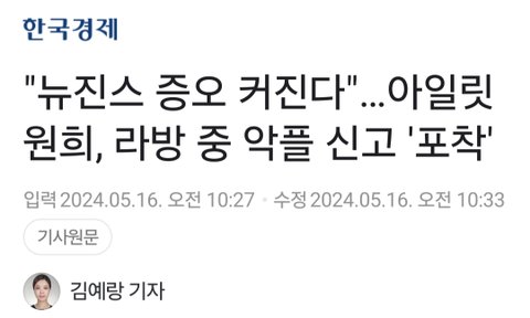 "뉴진스 증오 커진다" 아일릿 원희 쉴드 기사쓴 기자의 전 기사들