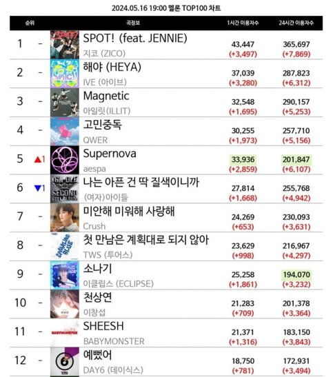 에스파 멜론차트 탑백 5위임