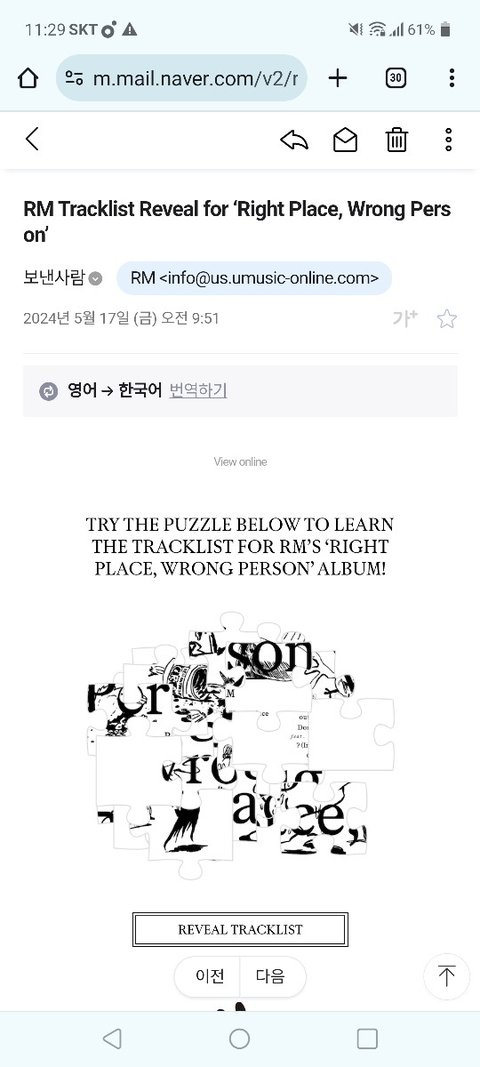 남준이한테 메일왔다!