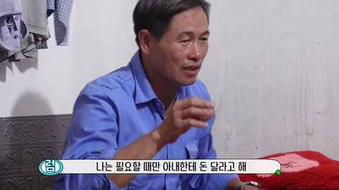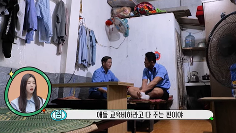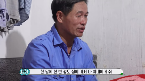 숙소에 있다가 한 달에 한 번 정도 집에 가서 아내에게 다 준다고 함
