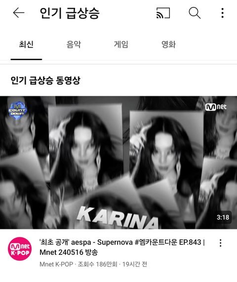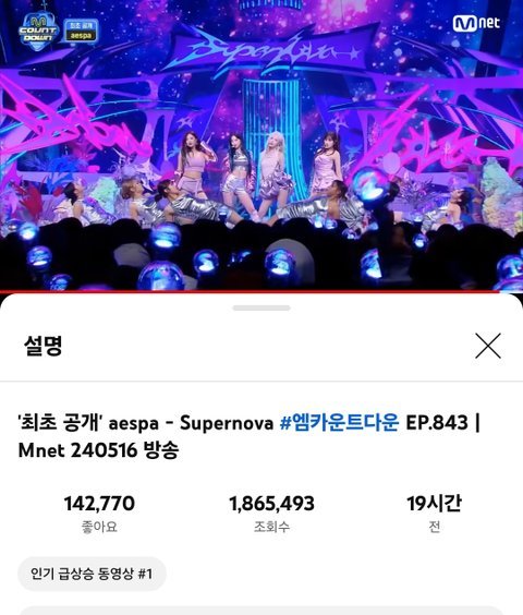 에스파 슈퍼노바 엠카 무대 인급동 1위