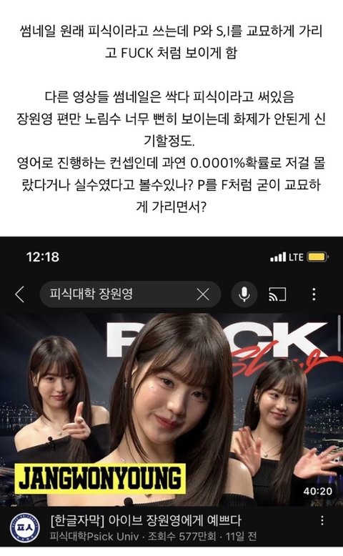 아니 썸네일 왜저래?? 여태까지 로고 한번도 가린적 없는데 ㄹㅇ fxck she같아서 의심스럽네ㅅㅂ