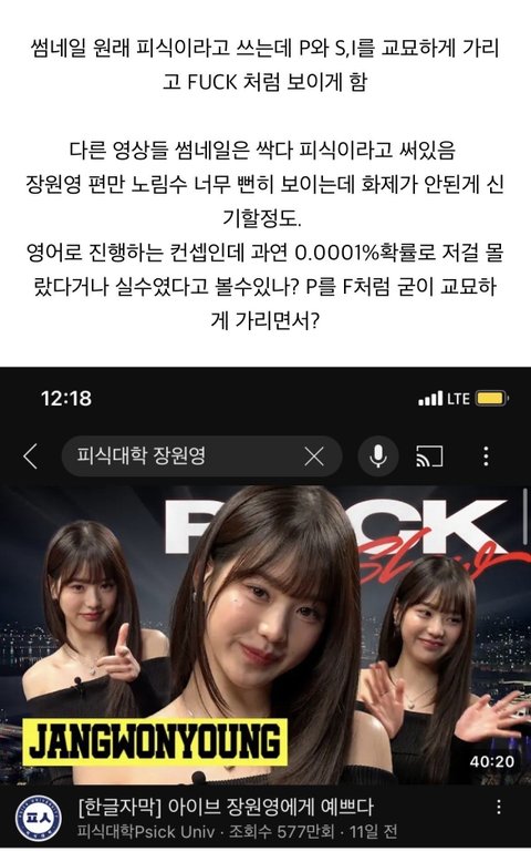 피식대학 장원영편 논란