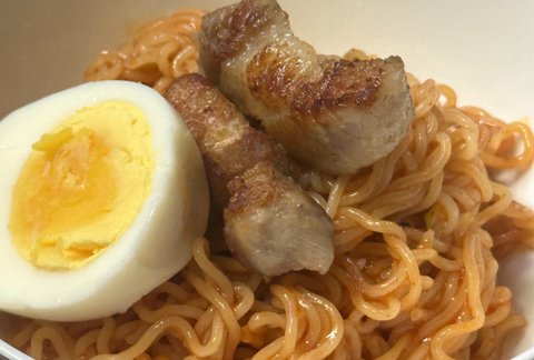 삼겹살에 비빔면.. 처음 먹는 조합인데 맛있뇌