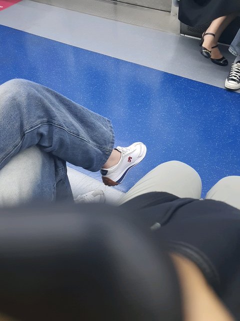 이 아줌마 신발이 내 바지에 닿았는데
