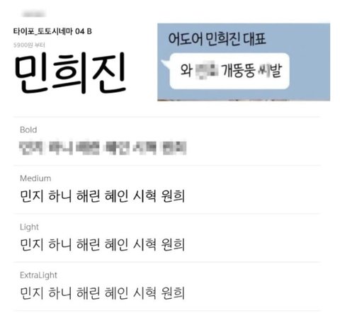 방송에서 이진호는 특정 멤버라고 칭했지 뉴진스의 특정 멤버라곤 안 함 민희진이 뉴진스 멤버 뚱뚱하다고 욕했다고 말하는 사람들이 많던데 폰트까지 맞추고 모자이크해봤을 때 저 이름은 원희임