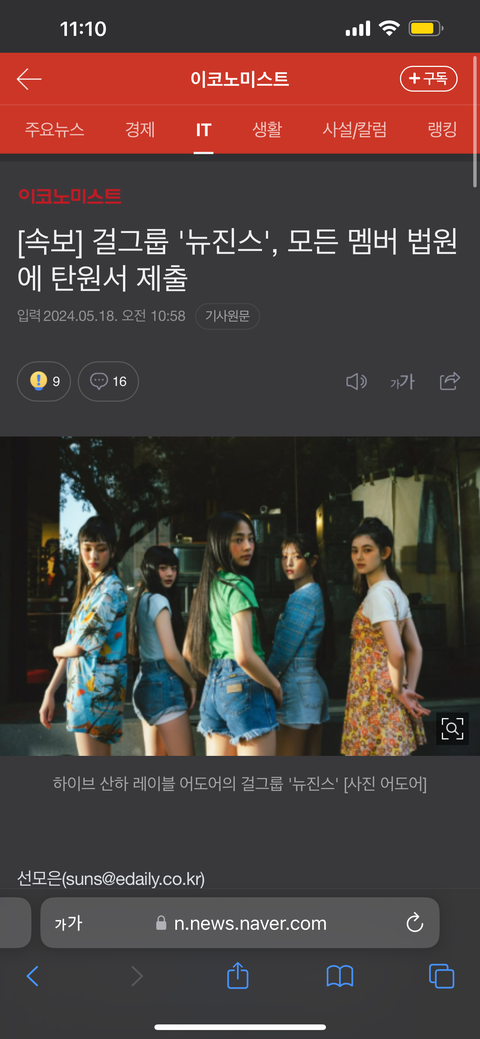 [속보]뉴진스 전멤버 법원에 탄원서 제출했대