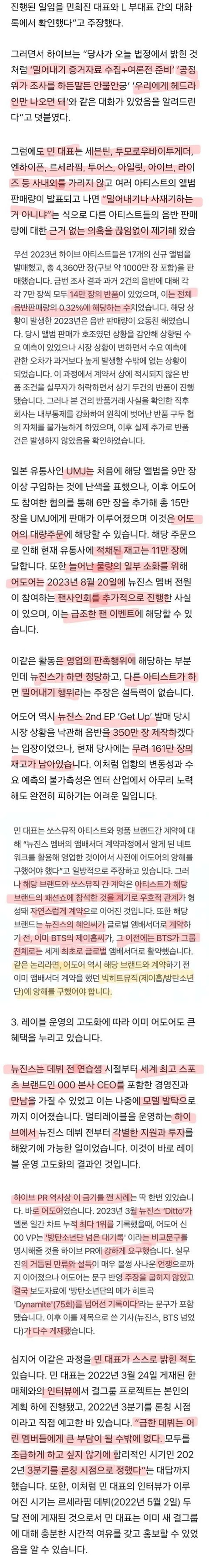 민희진 입장문만 철썩같이 진실이라고 믿고