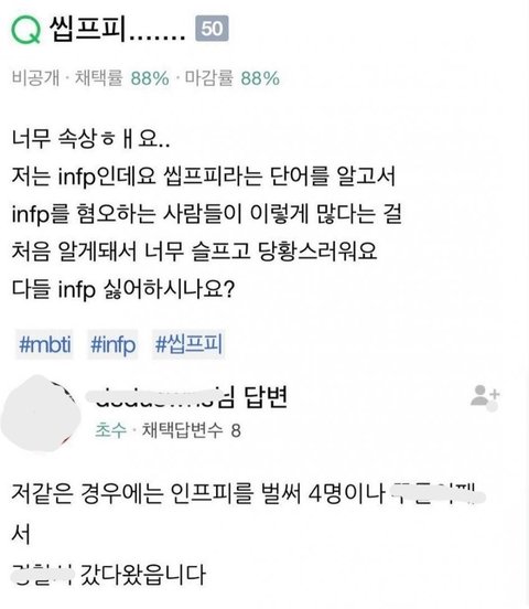 T인거랑 사회성 없는건 다른건데 요즘애들이 걍 지잘못 졸라 회피할라고 사회부적응자인거 인정 안하고 나 T라서 그래, 나 F라서 그래 나 I..