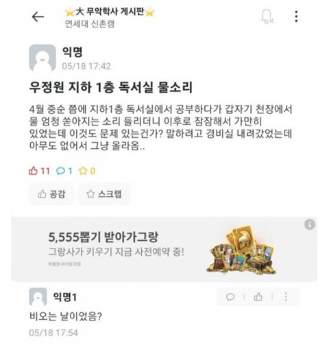 현재 연세대 기숙사 상태가 삼풍백화점 붕괴 직전 상태와 비슷함