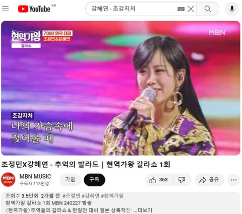 (사진3 설명) 조정민X강혜연 - 조강지처|MBN현역가왕 갈라쇼 1회 YouTube MBN 동영상 화면 캡춰