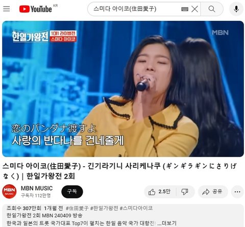 (사진5 설명) 스미다 아이코(住田愛子) - 긴기라기니 사리케나쿠 (ギンギラギンにさりげなく) 한일가왕전 2회 YouTube MBN 동영상 화면 캡춰