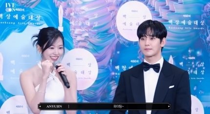 안유진은 "선배님 저희 앨범인데요"라며 김수현에게 아이브 앨범을 건넸다.