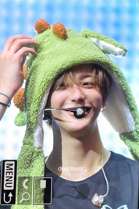 현지팬이 던져준 인형 모자 쓰고 팬서비스