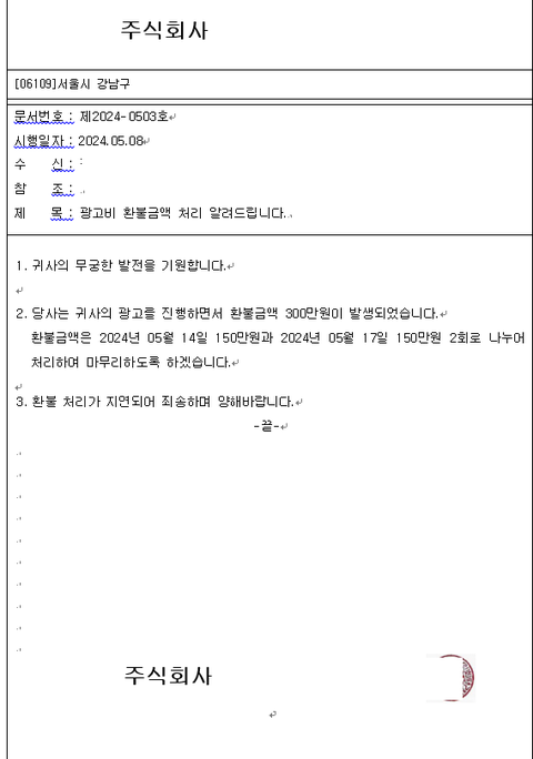 5월 8일 - 14일, 17일 나누어 150만원씩 입금해준다고 함 이때 공문까지 받았음