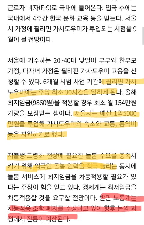 홍콩도 싱가폴도 가사노동자들은 이민자들만 따로 급여정책이 있어서100만원에 쓰는데 우리나라 미친거 같네요