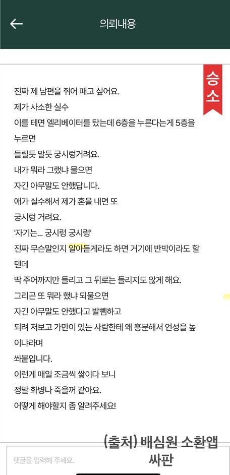 궁시렁거리는 남편 땜에 화병 날꺼 같아요ㅜ
