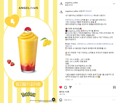 엔제리너스 이번에 포켓몬 신메뉴 나오면서