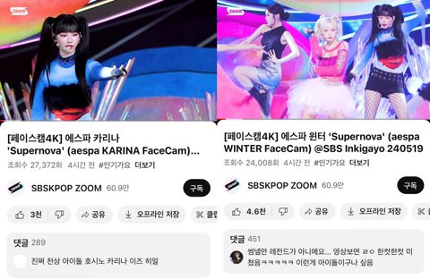 그냥 카리나 직캠만 주작하면 누가 뭐라하나 저렇게 주작해놓고 에스파 조회수 ㄷㄷ 이런 제목으로 커뮤마다 돌아다니면서 이상한 프레임 만들려고 돌아다니는게 극혐임