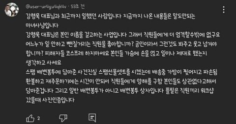 제정신인가 강형욱 논란에 대해선 결과를 두고봐야겠지만, 어쨌든 그 직원들이 니가 말한 사람들 같을 거라는 보장은 있냐? 근무 태만이면 짤라. 여기서 징징대지말고. 글구 이런 글은 니 인격 보여주는거야. 근무 태도가 성실하지않고 니 눈에 맘에 안든다고 인격적으로 모독하고 노동법 개무시해도 된다는거냐? 먼저 인간부터 되길 바란다.