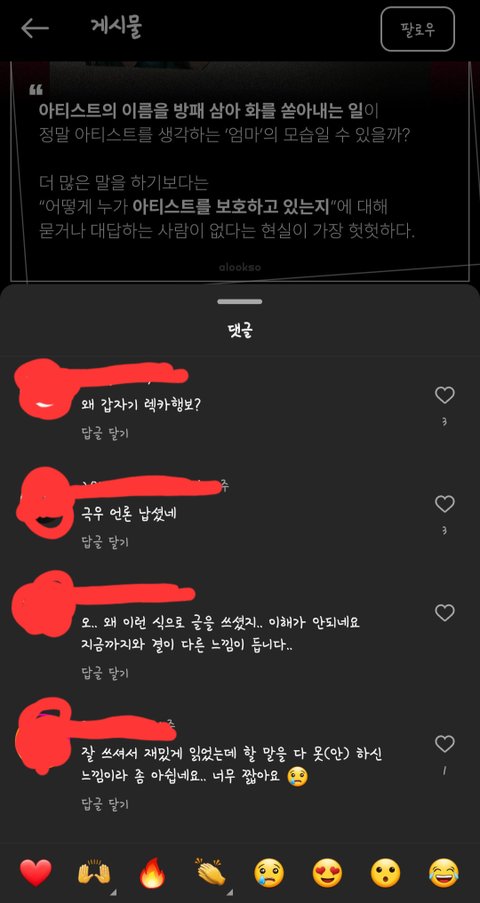 심지어 평소에 좋은 글 쓴다고 칭찬 받던 SNS 계정에서도 민 기자회견 까는 글에 이런 반응 나옴