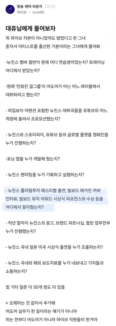 즉 말하고싶은건 하이브가 차별, 대우가 부족하다? 이런건 근거 x